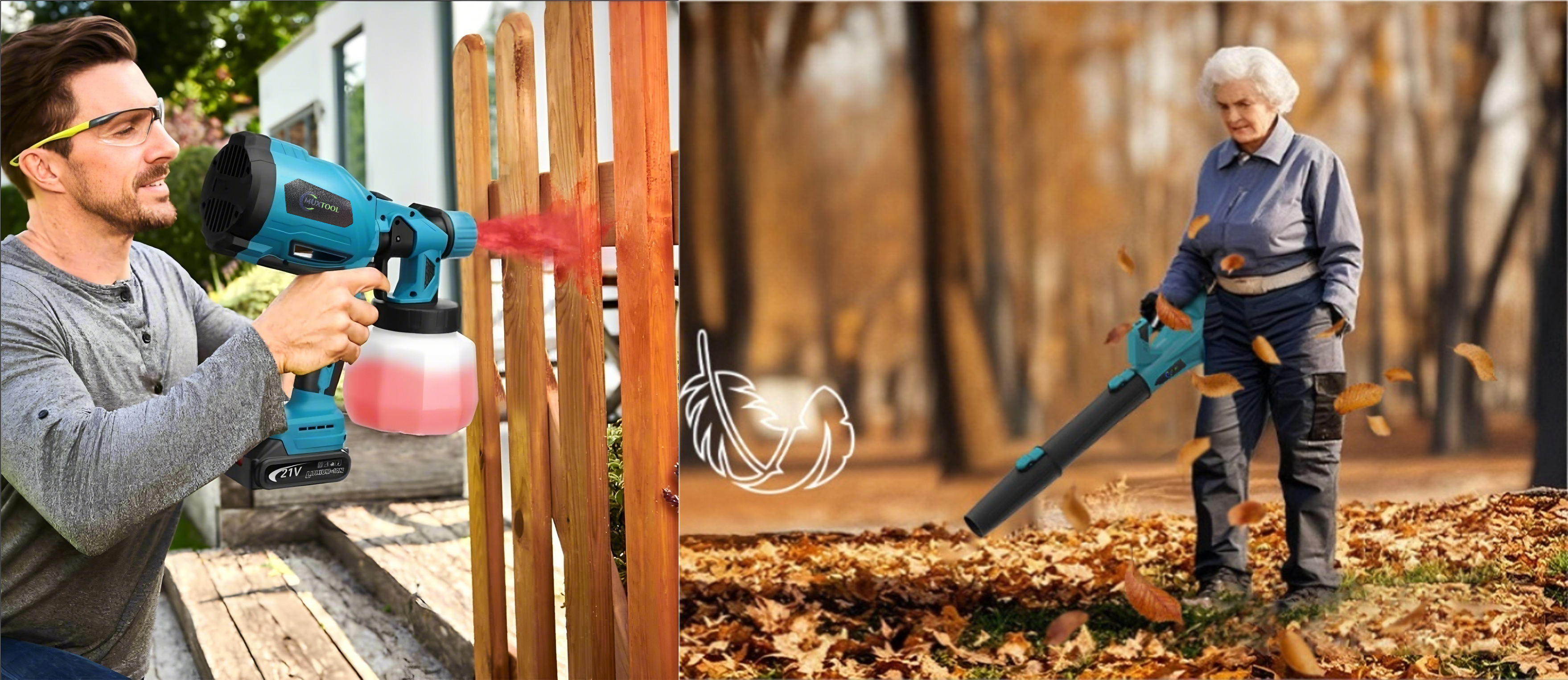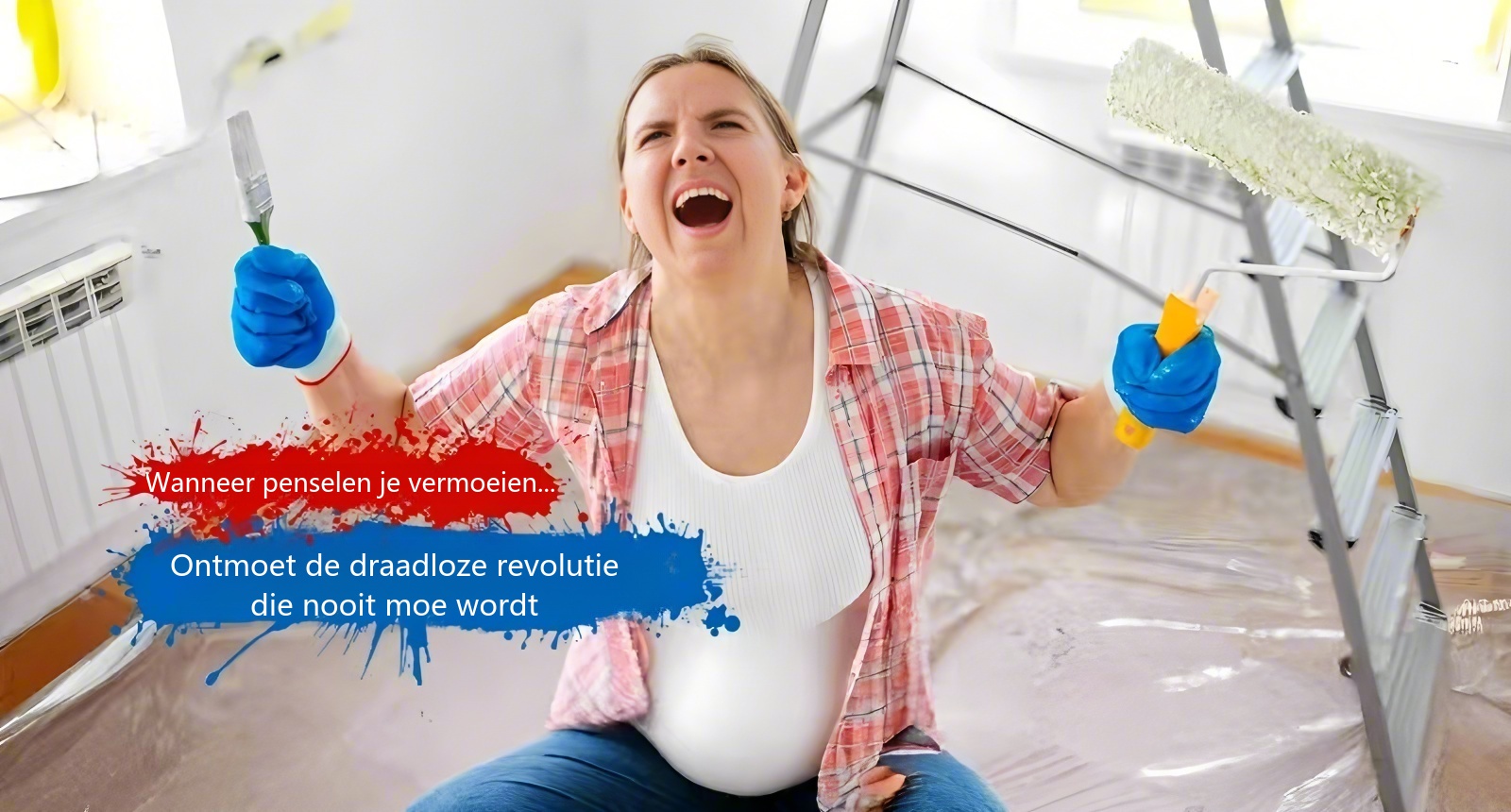 Draadloos verfspuitpistool met 2 accu’s, geschikt voor doe-het-zelfprojecten zoals het schilderen van huizen, meubels en afsluitingen.